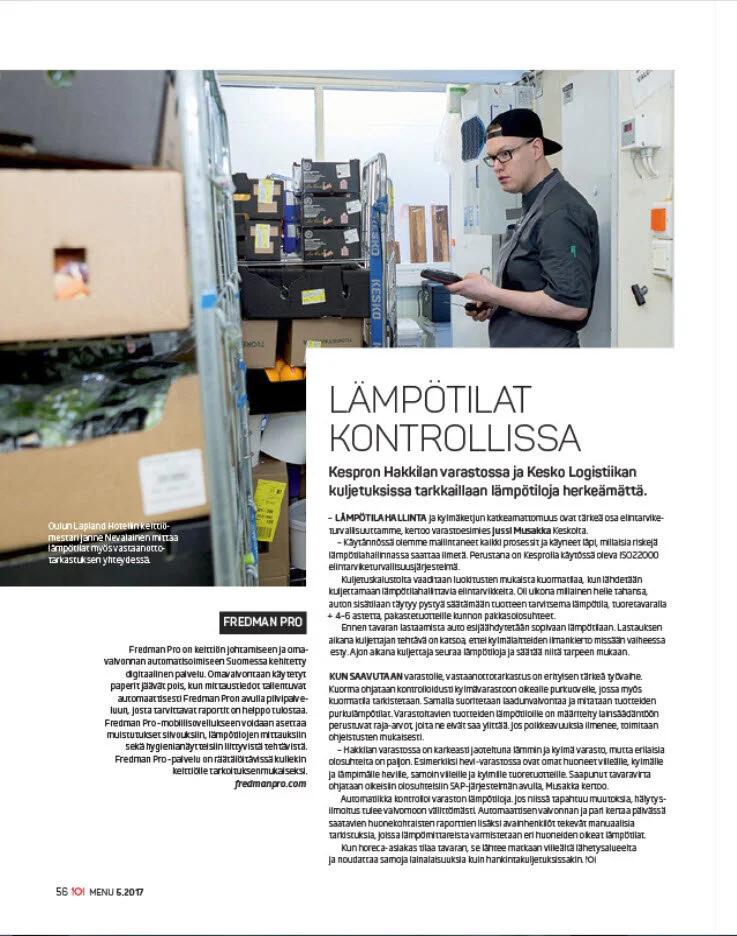 In October I shot some images for Menu-magazine again. This time the subject was digital in-house control in restaurants. The subject in the article was how restaurants in theLapland Hotelschain are using digital in-house control systems to control their cold chain and food temperatures along the process.