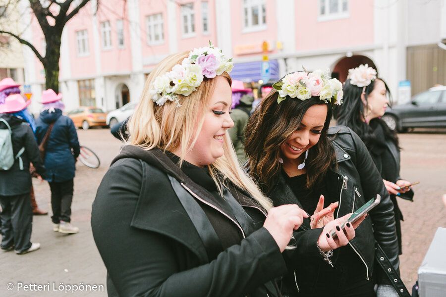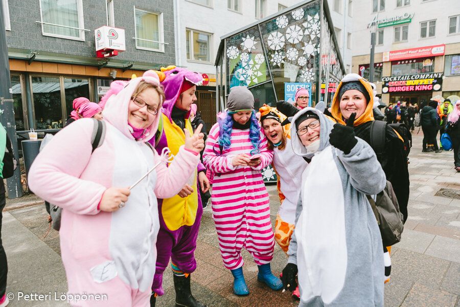Last Friday 4.5.2018 not even sleet could hold back the cheerful and colorful crowd that had gatheredRotuaarirallifor the start in front of the Rotuaari stage. The happy group warmed up before the competition began, led by DJ Suwi and Neiti Virtapiikki among others. The competitors scattered around the city center to different checkpoints. Here below is a small photo compilation from the event. If you still need a photographer for your summer event,get in touch.