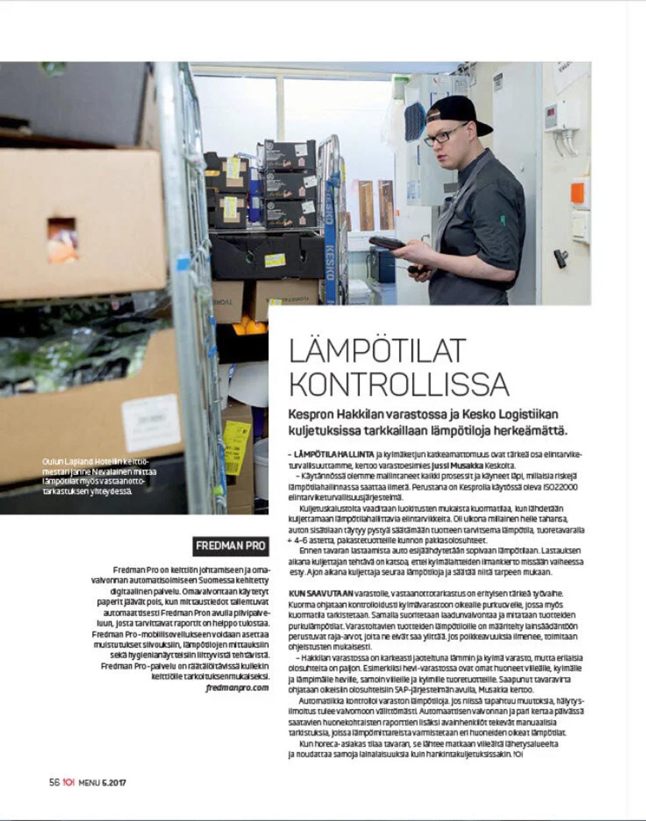 Lokakuussa kuvasin jälleen kuvia Menu-lehteen. Tällä kertaa aiheena oli digitaalinen sisäinen valvonta ravintoloissa. Artikkelin aiheena oli se, miten ravintolatLapland Hotels-ketjussa käyttävät digitaalisia sisäisen valvonnan järjestelmiä kylmäketjun ja ruoan lämpötilojen valvontaan prosessin aikana.