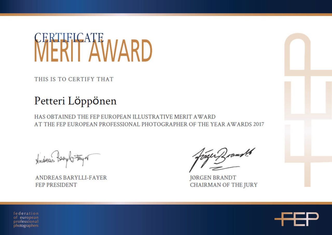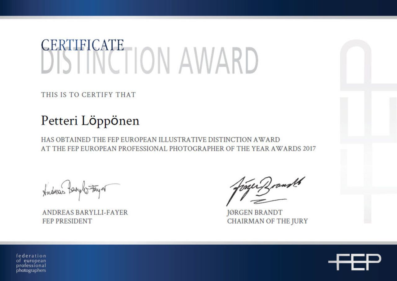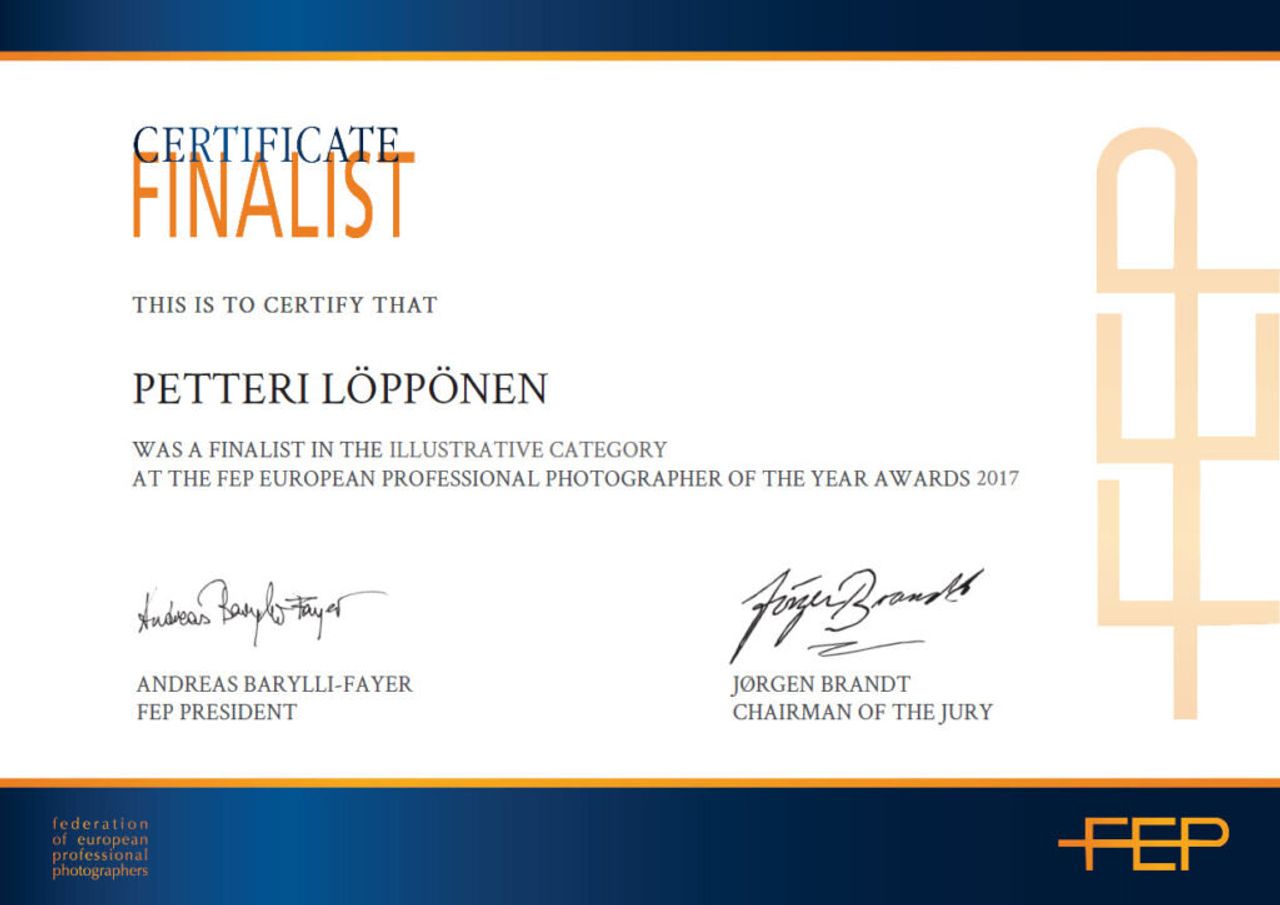En ole osallistunut valokuvauskilpailuihin kovinkaan paljon viime vuosina. Mutta viime vuoden lopussa osallistuin. Viime syksynä yritin oppia tekemään yhdistelmäkuvia ja tein muutamia omia kuvaussessioita. Ei toimeksiantotyötä (tosin tein pari yrityskuvausta myös tällä tavalla), vaan itselleni oppiakseni tätä tyyliä kuvata taustakuva ja sitten henkilö studiossa sitä taustaa varten ja sitten yhdistää nämä Photoshopissa. En ole koskaan ollut sen kannattaja, että viettäisin paljon aikaani tietokoneen ääressä, mutta ajattelin, että tämä yhdistelmätekniikka olisi hyödyllinen taito ja hyöty kaupallisille asiakkailleni. Joten otin yhteyttä kontortionistiin Iisaan ja pyysin häntä malliksi studioon. Hän on upea kontortionisti ja sain tehtyä pari lopullista kuvaa kuvauksesta. Kun kuvasin häntä, minulla ei ollut mitään taustakuvaa mielessä lopulliseen kuvaan. Se on itse asiassa väärä tapa tehdä yhdistelmäkuva. On helpompaa ja parempaa kuvata/hankkia taustakuva ensin ja sen mukaan sitten kuvata malli. Sillä tavalla tietää mistä kulmasta kuvata, mitä valaistusta käyttää ja mitä objektiivia käyttää. Joten tein pari yhdistelmäkuvaa. Pidin oppimisprosessista ja sain inspiraatiota ja oppia (workshopissa, verkkokurssilla tai vain kuuntelemalla esitystä) muilta valokuvaajilta (kutenAntti Karppinen,Onni W. Kinnunen,Erik ÅlmasjaErik Johanssonmainitakseni muutamia) matkan varrella.