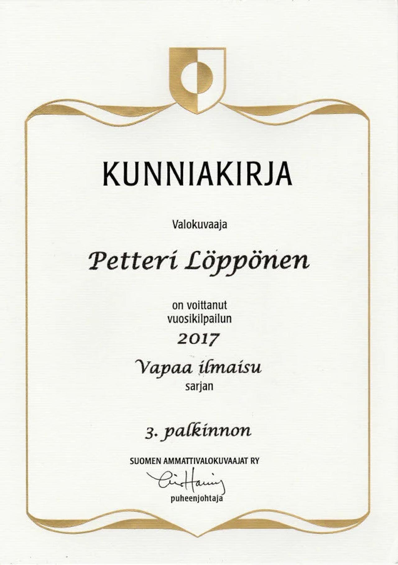 Olin melko tyytyväinen lopputulokseen ja tarpeeksi itsevarma lähettääkseni sen muutamiin valokuvauskilpailuihin kuten Suomen Ammattivalokuvaajat ry:n vuosikilpailu, FEP European Professional Photographer of the Year Awards ja One Eyeland Photography Awards. Sain finalistisijoituksen näihin kilpailuihin ja sain pronssimitalin sekä SAVA-kilpailussa että One Eyeland Awardsissa. FEP European Professional Photographer of the Year Awardsissa kuva sijoittui 6. sijalle. Kaiken kaikkiaan olen ollut hämmästynyt ja iloinen kaikesta tästä ja toivon, että tämä motivoi minua enemmän oppimaan tämäntyyppistä kuvantekoa. En vieläkään pidä siitä, että istun liikaa tietokoneella, mutta luulen, että olen kasvattanut kärsivällisyyttäni siihen. Palkintoja enemmän paras asia, minkä saa ainakin joissakin näissä kilpailuissa, on palaute kuvistaan. Ainakin SAVA-kilpailu on sellainen. Palaute ei aina ole sitä mitä haluaisi kuulla, mutta se on hyvä tapa parantaa valokuvaustaan. Kuvan tausta kuvattiin New Yorkissa Brooklyn Bridgeltä. Olin siellä lomamatkallla viime vuoden toukokuussa. Onneksi tuo tausta sopi tuohon kuvaan.